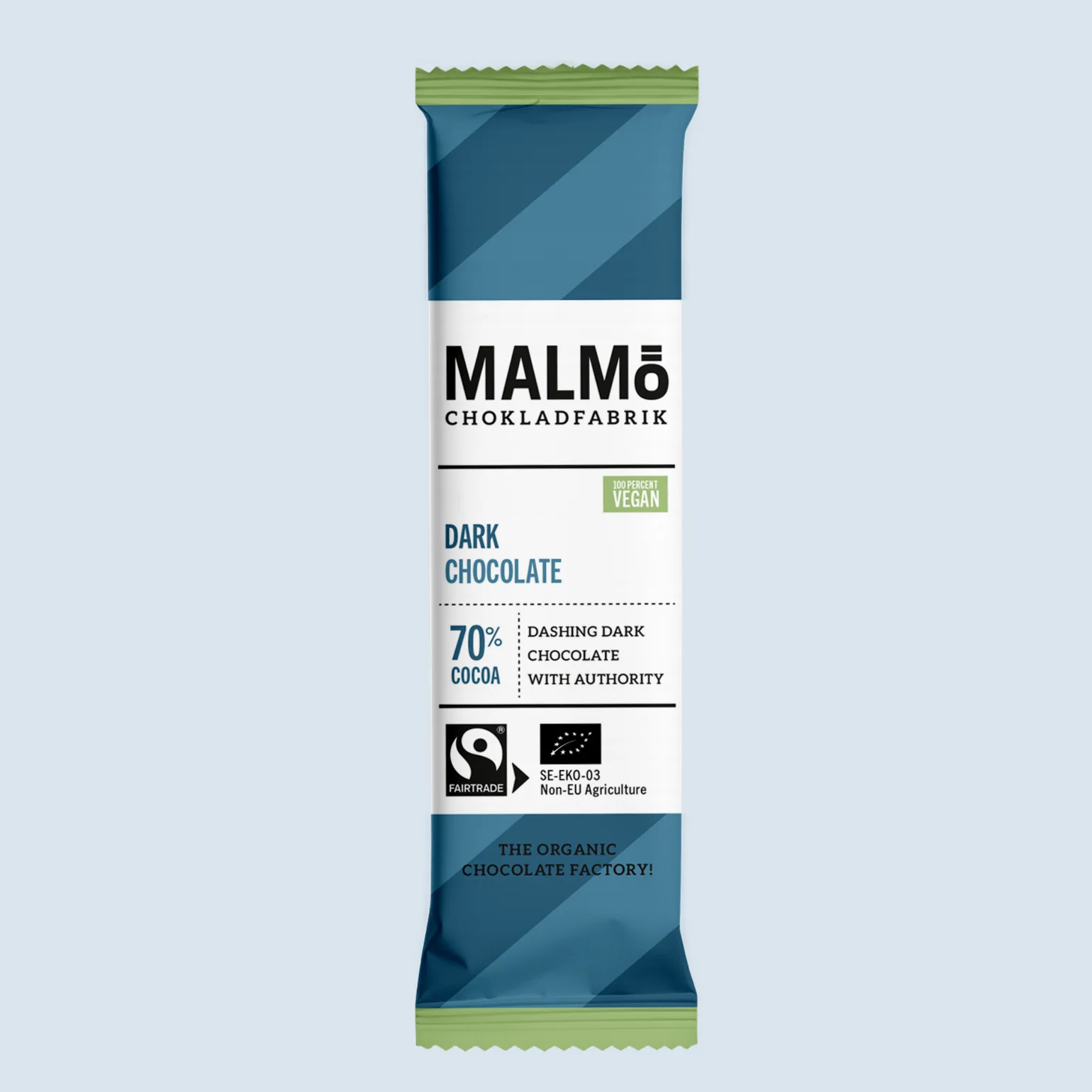 Dark chocolate 70% - Chokladkaka EKOLOGISK | FAIRTRADE | VEGANSK MÖRK CHOKLAD - 70% KAKAO - 25G Kraftfull mörk choklad med lång eftersmak som hänger kvar. Vegansk och med få ingredienser. Chokladen är ekologisk och vegansk, samt fri från nötter, soja och gluten. Vikt: 25g